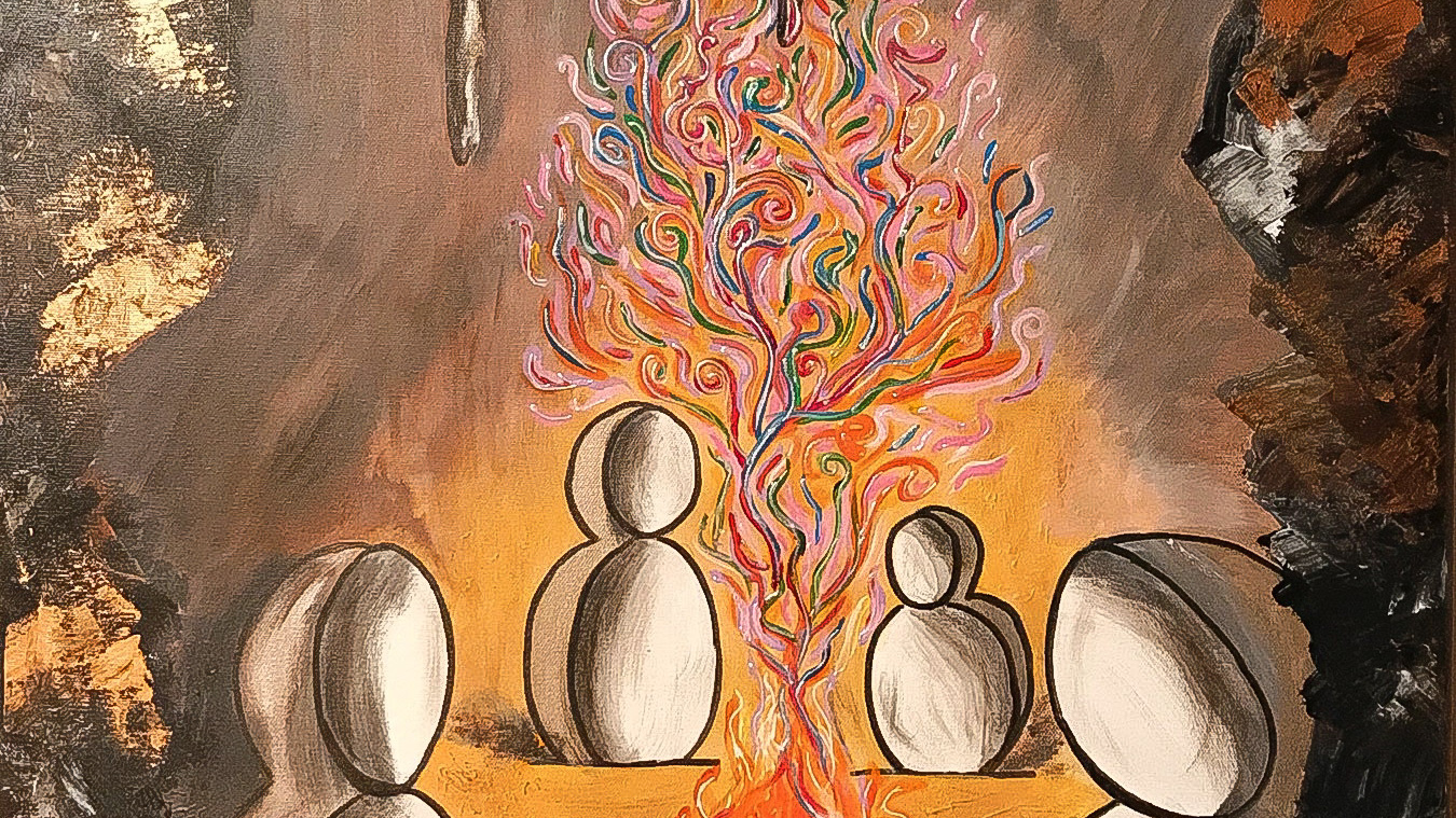 "Our Transformation" marks a crucial turning point in this exhibition. The abstract bird depicted in this painting symbolizes the evolution of our relationship with nature. It starts as a simple creature deeply connected to its surroundings and gradually transforms into a humanoid being, signifying our increasing awareness of the importance of nature in our lives. The colors of gold and green represent the value and beauty of nature while the serious expression of the bird suggests a deep message to us. This painting signifies that as humans, we are evolving to realize that we are not separate from nature, but rather a part of it, and that our survival and well-being is directly linked to the health of our planet.